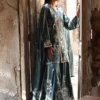 The Dark Green Cotton 3PC Gharara Set from our Image Luxury category, features a short shirt with V neckline, full length sleeves paired with an embroidered gharara and dupatta.