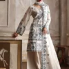 The Ivory Kora Cotton embroidered 3pc suit from our Tashkent collection which features a round neckline with a slit, full-length sleeves paired with embroidered trousers and dupatta. Round neckline with a slit Embroidered full length sleeves