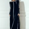 Adeena blue velvet shirt presents handmade stones, thread detailing, and zardozi sleeves, paired with a diamante border running across the shirt. Comes with an attached dupatta for effortless elegance.