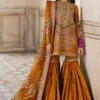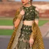 Crafted from luxurious Indian silk, this exquisite ensemble showcases intricate patchwork adorned with delicate sequins, pani, and tilla embroidery. The artistry reflects timeless craftsmanship and refined elegance. Paired with a beautifully scalloped border dupatta, this creation exudes regal allure and graceful sophistication — a true statement of opulence and tradition.