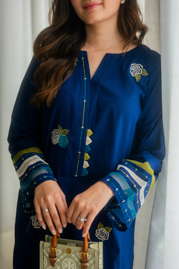 Intricate embroidery in soft shades of beige and deep plum adds a touch of refinement, making this piece both versatile and sophisticated. Crafted from our in-house produced cotton, the fabric is soft, breathable, and perfect for the cooler days ahead.