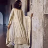 Bottom: Ivory coloured dhaka pajama constructed from russian grip silk features a striking crushed finish.