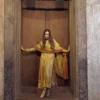 Shirt: Beige colored pure silk front open shirt defined by heavy, intricate thread embroidery covering the entire front, back and full length sleeves, Finished with co-ordinating embroidered borders at the hem.