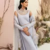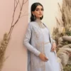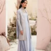 Azalea is a modern day silhouette inspired from the blooming flowers on the powder blue colour palette. Grip gown features beautiful neckline, paired with the raw-silk jacket which exhibits embroidered details and embellishments all ove