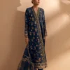 Exude timeless elegance in this traditional angarkha silhouette, Azdeh. Featuring floral and shikargarh imagery and detailed with gotta along the shirt front and borders, Azdeh is a sure shot head turner. Pair it with a diaphanous organza dupatta that flows in a dreamy blend of rich royal colours, finished with gotta details.