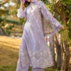 Fresh and graceful in a soft lavender tone, this unstitched ensemble is crafted from pure cotton lawn, featuring finely embroidered motifs arranged in an elegant, all-over pattern. Delicate cutwork accents and intricately detailed borders add texture and visual depth to the fabric. Paired with a pure cotton cambric trouser and a chiffon dupatta that enhances its airy feel, this design is ideal for refined summer dressing with a light, feminine appeal.