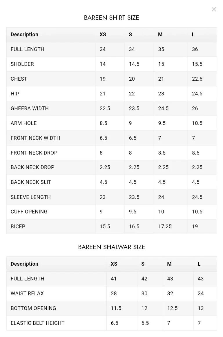 Package Includes:Â 2pc Shirt & Shalwar, separate scarf