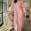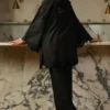 A striking all-black Schiffli co-ord crafted in pure cotton, featuring intricate cutwork bows, butterflies, scalloped edges, and delicate floral vine motifs. Designed with refined detailing and effortless tailoring, this ensemble brings bold elegance and modern femininity to Ramadan and beyond.