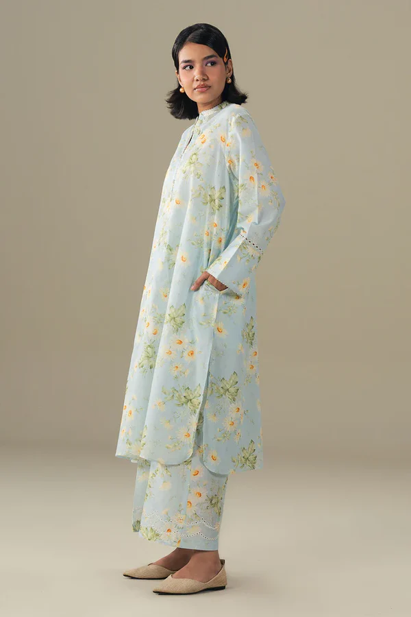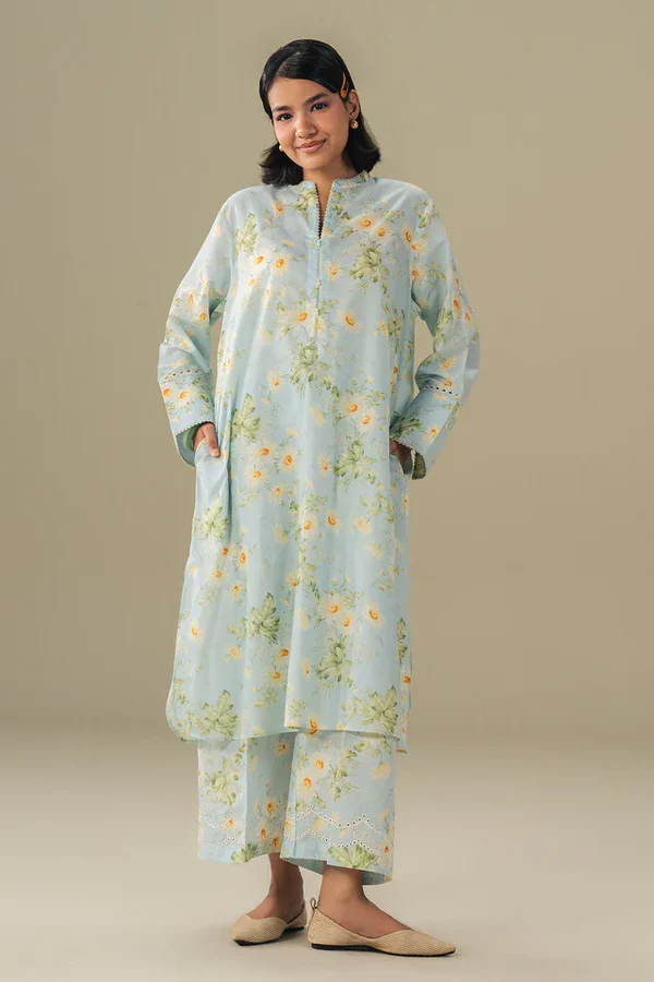 Fresh, easy, and full of subtle charm. This regular-fit floral kurta features minimal embroidery on the sleeves, paired with cropped straight pants for a clean, modern finish. Effortless style with a touch of playful rhythm for everyday wear.