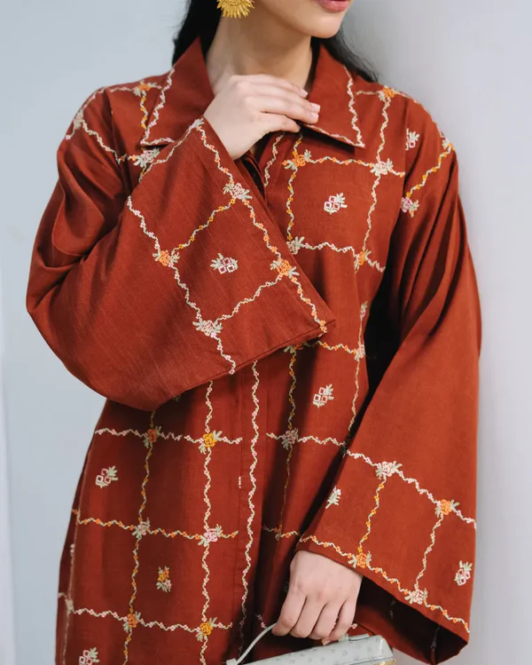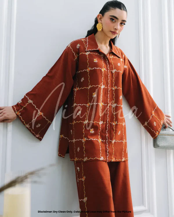 In a rich autumn tone, Cinnamon brings warmth and character to your wardrobe. Made from premium linen and adorned with intricate contrast embroidery, it combines refined craftsmanship with modern ease — an ideal choice for the season’s polished yet relaxed aesthetic.