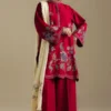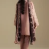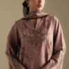 A blush pink karandi shirt and trouser paired with a deep brown and candle light peach shawl, a warm yet delicate mix that carries effortless winter charm.