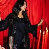 Cosmic stands out in deep midnight velvet, adorned with celestial-inspired embroidery that adds subtle shimmer and charm. A statement piece designed for those who appreciate artistry with effortless comfor