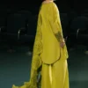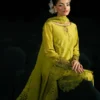 An intricately embroidered silk shirt paired with matching embroidered silk trousers, completed with a delicately embroidered chiffon dupatta for a sophisticated and elegant ensemble.