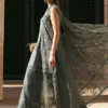 Embroidered Lawn Karandi Sleeves R+L With 3D Flowers & Pearls