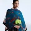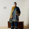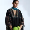 Description: A striking black short shirt, richly adorned with multicolour traditional embroidery and enhanced by thoughtfully structured panels. The short sleeves feature matching multicolour embroidery, finished with delicate tassel details. Paired with ivory short culottes, accented by a monochrome olive-green embroidered border, and completed with a flowy digital-printed silk dupatta.