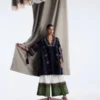 Description: A striking black short shirt, richly adorned with multicolour traditional embroidery and enhanced by thoughtfully structured panels. The short sleeves feature matching multicolour embroidery, finished with delicate tassel details. Paired with ivory short culottes, accented by a monochrome olive-green embroidered border, and completed with a flowy digital-printed silk dupatta.