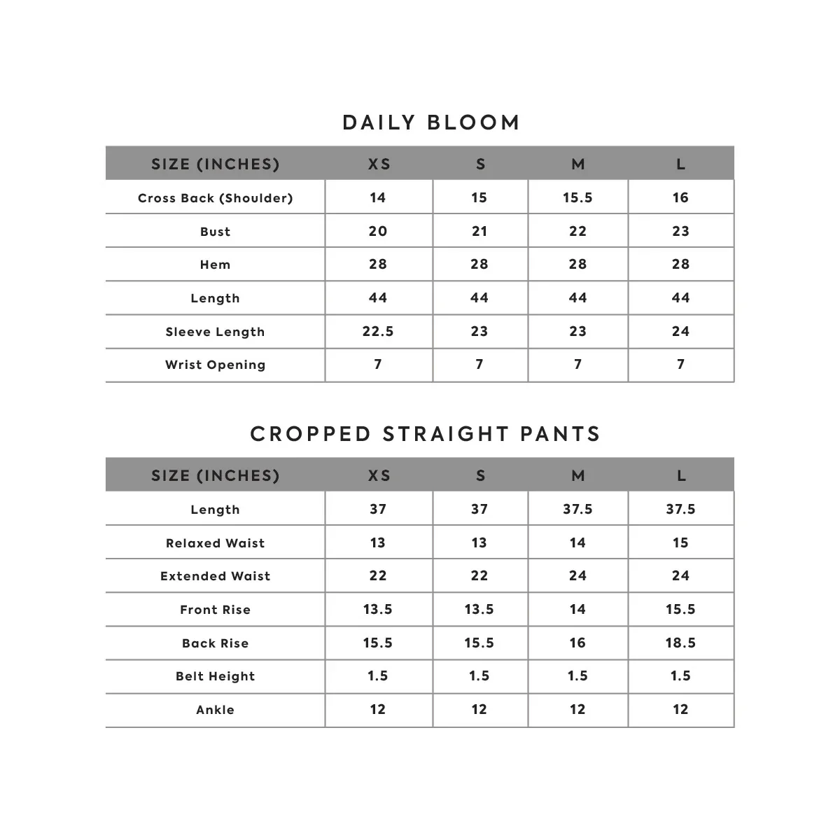 | Size | XS, S, M, L |