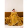Dandelion Yellow organza shirt and gharara with tilla, resham, sequin and badla embroidery paired with an organza adda work dupatta.