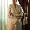 Introducing a charming butter yellow front-open shirt with beautiful off-white all-over embroidery. It comes with a silk contrast dupatta in ice blue, beautifully printed and embroidered, adding elegance to this stylish ensemble. Perfect for any special occasion.