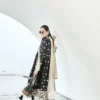 Dupatta: Black pure katan silk polka dot dupatta with thread and zari embroidery borders.