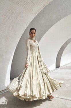 Bottoms: white crushed lehenga made with grip silk.