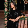 A rich black velvet two-piece adorned with tonal sequined floral motifs. The relaxed, easy silhouette pairs with a matching velvet shalwar, creating a refined yet effortless festive look.