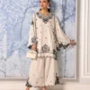 Paired with wide-leg trousers finished with embroidered edging, this look blends effortless grace with timeless sophistication — a perfect addition to your fall wardrobe.