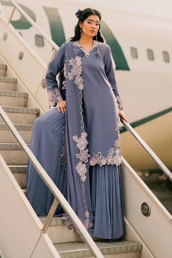 Fabric: Shirt: Rameen Silk, Sharara: Chiffon, Dupatta: Chiffon