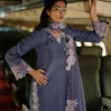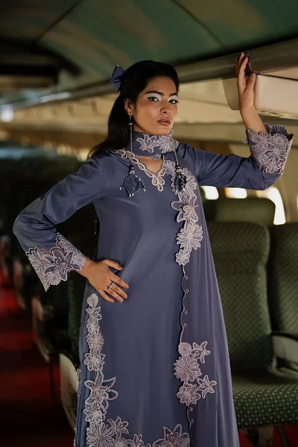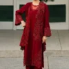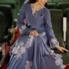A luxurious silk shirt paired with a flowing chiffon sharara, complemented by an intricately embroidered chiffon dupatta for a refined and elegant ensemble.