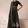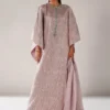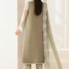 Elevate your wardrobe with this sophisticated three-piece ensemble crafted from premium fabrics. The shirt features exquisite embroidered chiffon with a meticulously handmade neckline, while the coordinating dupatta showcases delicate chiffon adorned with an embroidered border. The grip trousers are finished with an embroidered patch border for added refinement. This complete set includes the shirt, trousers, dupatta, and accessories, offering a polished, ready-to-wear solution for occasions demanding elegance and attention to detail.
