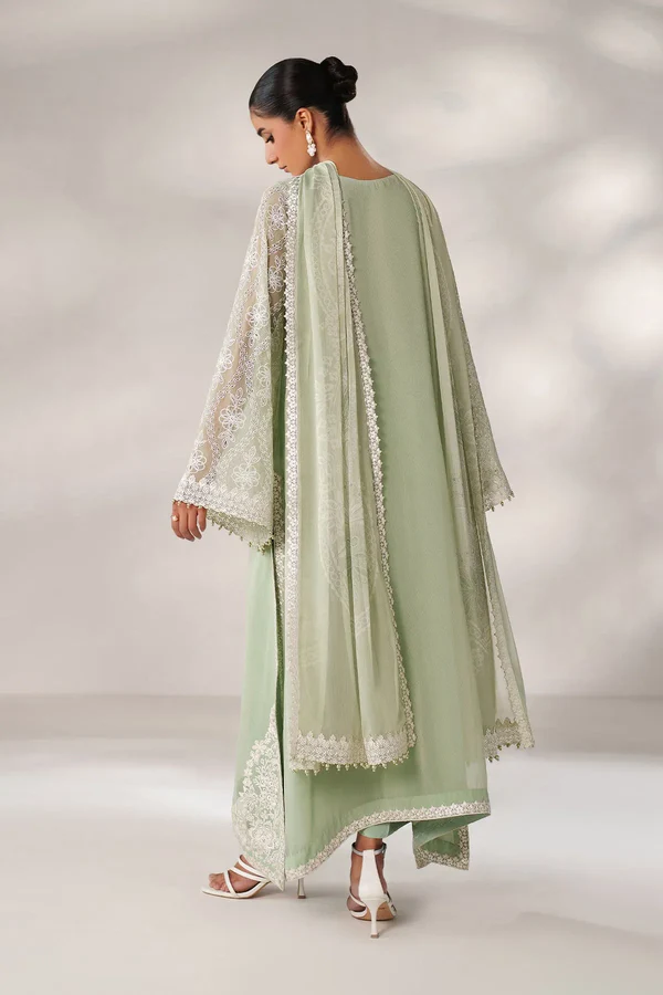 Elevate your wardrobe with this sophisticated three-piece ensemble featuring premium fabrics and intricate craftsmanship. The shirt showcases exquisite embroidered schiffli work, while the digital printed chiffon dupatta is adorned with a delicate embroidered border for added elegance. Paired with comfortable grip trousers, this collection delivers both style and practicality. Complete with coordinating accessories, this versatile set is designed for the discerning individual who appreciates quality and refined aesthetics.