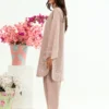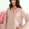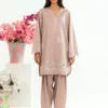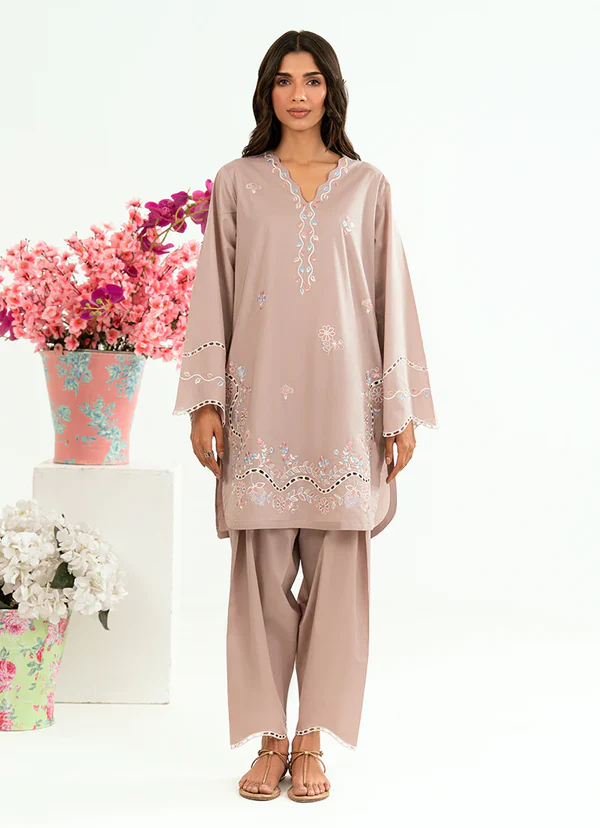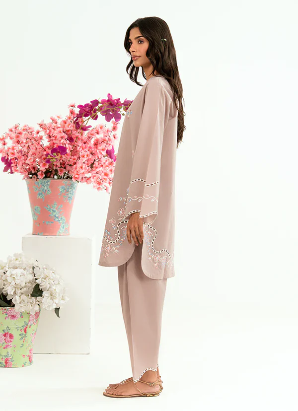 A soft light brown cotton embroidered co ord set designed in a relaxed silhouette for effortless everyday elegance. The top features delicate embroidery along the neckline and hem, adding subtle detail and refined charm. Paired with a relaxed shalwar that offers comfort and graceful movement, this set feels easy, polished, and versatile perfect for daytime outings, casual gatherings, and understated everyday dressing.