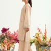 A soft camel cotton embroidered co ord set designed in a relaxed silhouette for effortless everyday elegance. The top features delicate embroidered motifs scattered across the front and sleeves, finished with subtle detailing along the hem for added charm. Paired with wide legged trousers that create graceful movement and comfort, this set feels light, polished, and versatile perfect for daytime outings, casual gatherings, and refined everyday wear.