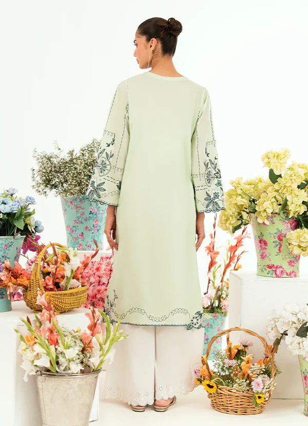 A fresh matcha green cotton embroidered kurta designed in a relaxed straight silhouette for effortless everyday wear. The design features delicate botanical embroidery flowing across the front and sleeves, creating a soft, nature inspired look. Crafted in breathable cotton with an easy, comfortable cut, this kurta feels light, graceful, and versatile perfect for daytime outings, casual gatherings, and refined everyday dressing.