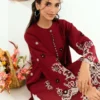 A deep red cotton embroidered kurta designed in a relaxed straight silhouette for effortless everyday elegance. The kurta features delicate embroidery along the neckline with intricate motifs placed across the front and sleeves, finished with a beautifully detailed embroidered hem. Crafted in breathable cotton with an easy, comfortable cut, this piece feels rich yet easy to wear, perfect for daytime gatherings and refined casual occasions.