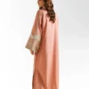 This exquisite coral ensemble adds a touch of elegance to any wardrobe, designed as a sophisticated style statement outfit. The long, A-line fit shirt features delicate floral embroidery and mesmerising sequin work, creating a beautiful and stylish look with scintillating embellishments around the neckline, sleeves, and hem. The round neck and A-line hem contribute to a graceful silhouette, perfect for any occasion when paired with contemporary trousers for a chic look.