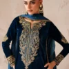 Elevate your wardrobe with this stunning three-piece ensemble featuring luxurious velvet craftsmanship. The embroidered shirt showcases intricate hand embellishments at the neckline, creating an elegant focal point. Paired with comfortable grip trousers for effortless movement, this set is completed by a digital printed silk crush dupatta adorned with a delicate embroidered border. Perfect for special occasions, this collection brings together traditional artistry and refined style, complete with coordinating accessories to complete your look.