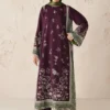 This luxurious outfit features an embroidered velvet front and back with matching velvet sleeves and borders, showcasing exquisite craftsmanship. The silk neckline patch adds a refined touch, while the dyed chiffon dupatta with an embroidered organza border enhances elegance. Completed with embroidered velvet trousers, this ensemble offers both comfort and sophistication, perfect for special occasions.