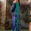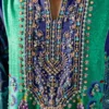 A statement kaftan set in striking emerald green and royal blue, featuring a beautifully flowing silhouette enriched with intricate artwork and ornate detailing.