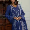 Introducing our stunning deep periwinkle dress, designed with a front-open style shirt that exudes elegance. The dress features an inner shirt adorned with beautiful embroidery and intricate cutwork details, complemented by delicate lace accents. Paired with an embroidered chiffon dupatta and stylish culottes pants, this outfit is perfect for any special occasion. Embrace a blend of sophistication and modern fashion with this exquisite ensemble!