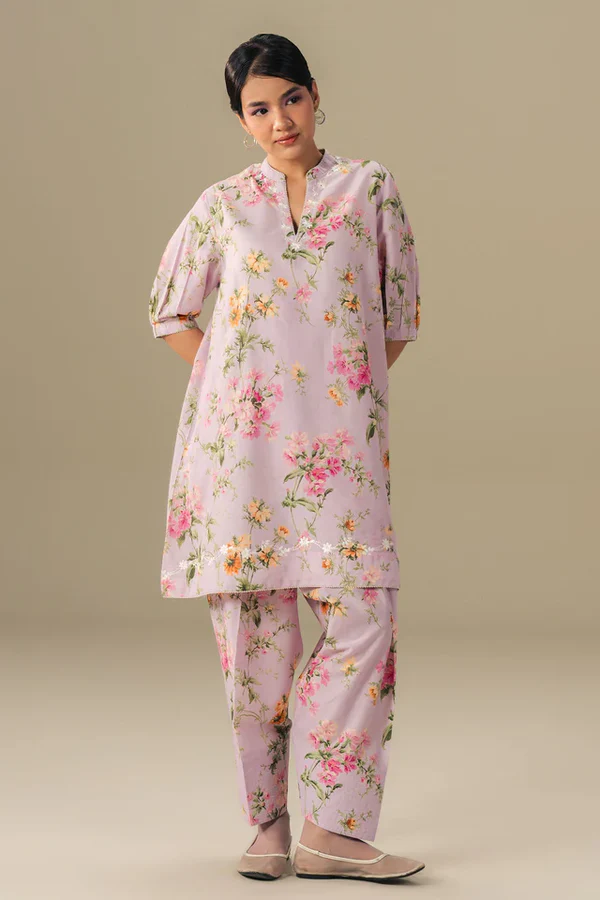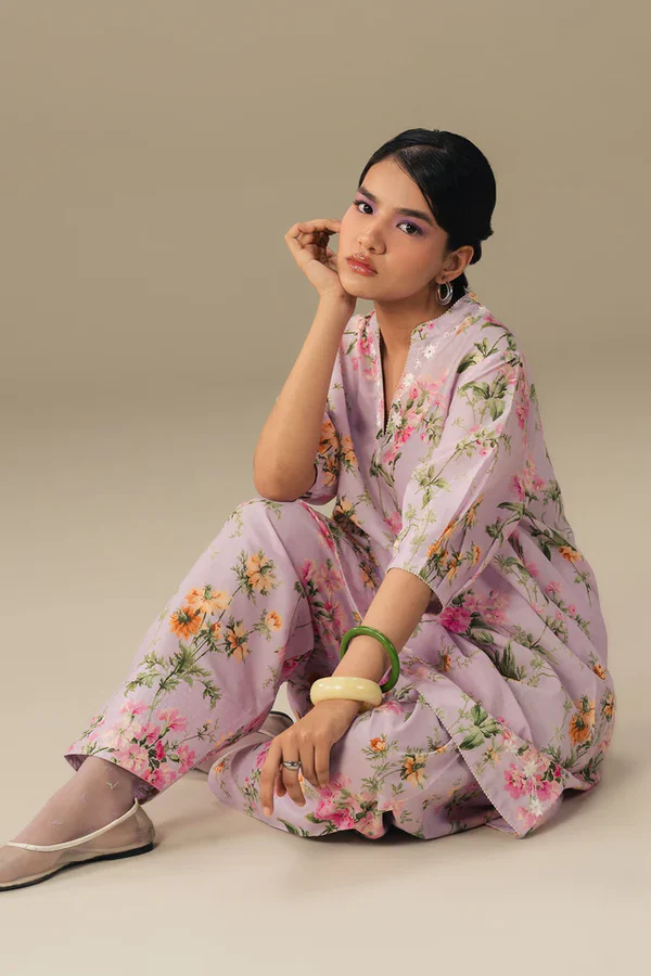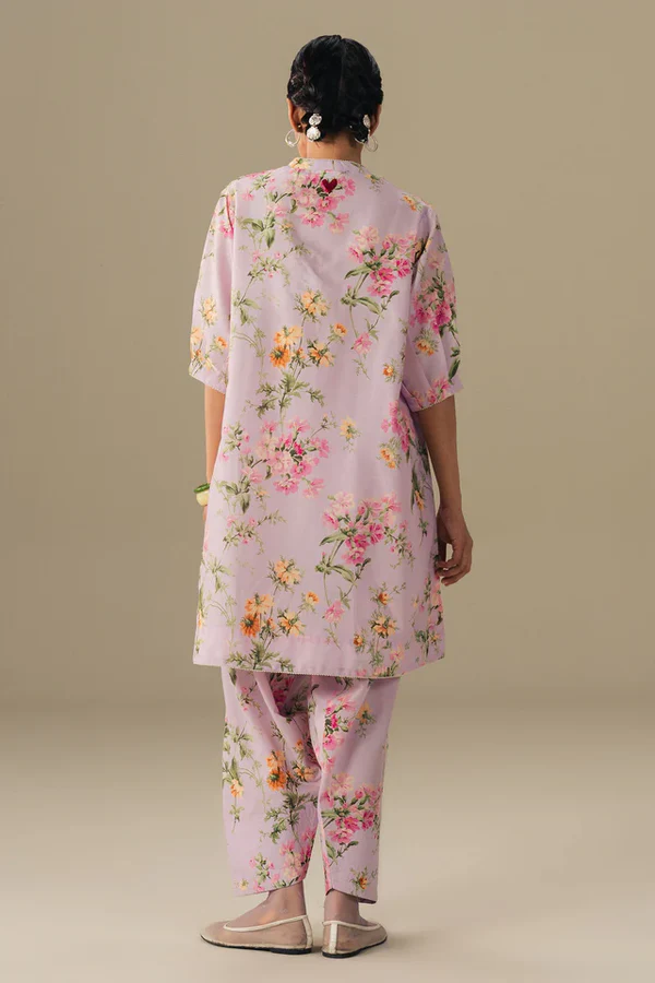 Classic with a playful edge. This floral printed kurta features delicate embroidery on the neckline and hem, with pleated sleeve details, paired with a tonal tapered shalwar. Effortlessly elegant, it’s a look that moves with you and adds a fresh, modern twist to everyday style.