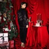 Galaxy combines plush velvet with elegant contrast embroidery and refined button detailing for a polished winter look. Its structured yet relaxed silhouette makes it versatile for both evening wear and festive gatherings.