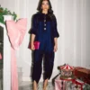 A deep midnight-blue velvet set embellished with shimmering blue sequined florals. Paired with a soft velvet shalwar, Glacier offers a luminous, winter-ready elegance perfect for evening wear.
