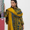 Floral block-print shirt in shades of blue on a chrome base, paired with a matching dupatta, exuding elegant traditional charm.