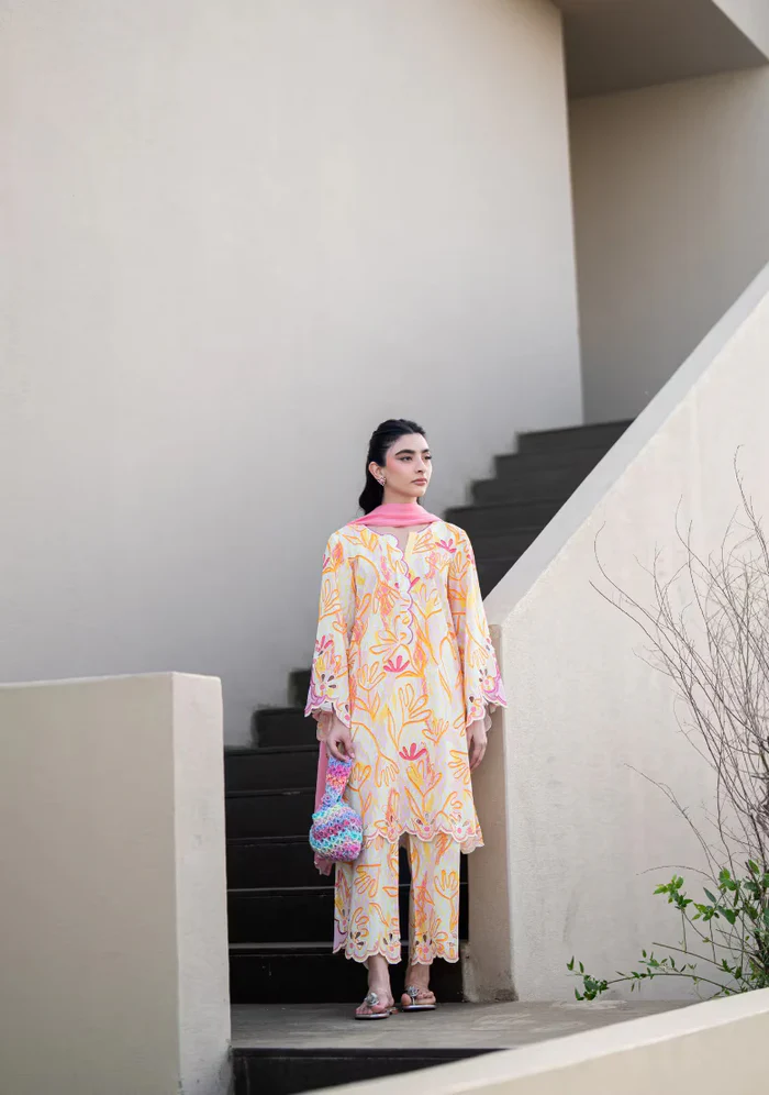 Pure Lawn printed set Includes a printed shirt with embroidered details and culottes Fabric: Pure Lawn Suited for summer *The colour of the article may vary from the picture