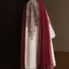 Hikari is crafted in white with Kashmiri and kashidakari-inspired embroidery, paired with a terracotta embroidered dupatta adorned with delicate Kashmiri motifs. Detailed with organza borders, embroidered panels, and matching dyed cambric trousers, the ensemble exudes heritage-rooted sophistication and understated elegance.