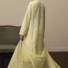 Hinata is crafted in luminous sunlight yellow, detailed with delicate chikankari embroidery across the shirt and dupatta for a graceful, radiant silhouette. Complemented with matching embroidered cambric trousers and layered organza borders, the ensemble embodies timeless sophistication and heritage-rooted charm.