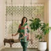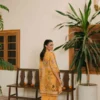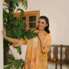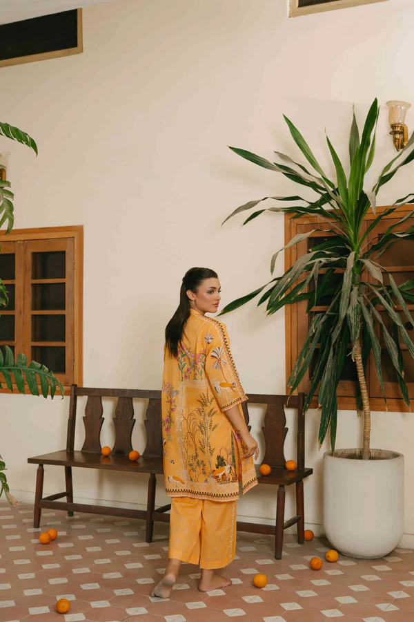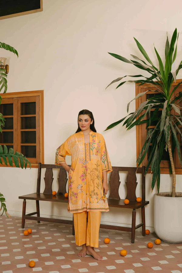 A vibrant orange ensemble brought to life with delicate florals and intricate detailing. The relaxed, airy silhouette adds a sense of ease while maintaining a refined, festive appeal.