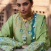 The neckline blooms with refined embroidery, while the voile dupatta—edged in ethereal scallops and adorned with heavenly borders—floats like a breeze, soft as a sigh.