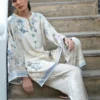 A matching set that easily translates from morning ease to evening polish, Ivory Flora radiates breezy elegance. The set features a soft boatanical print in neutral tones with contrasting blue florals along the neckline. Playful 3D elements accents the neckline for a distinctive finish and elevated look!
